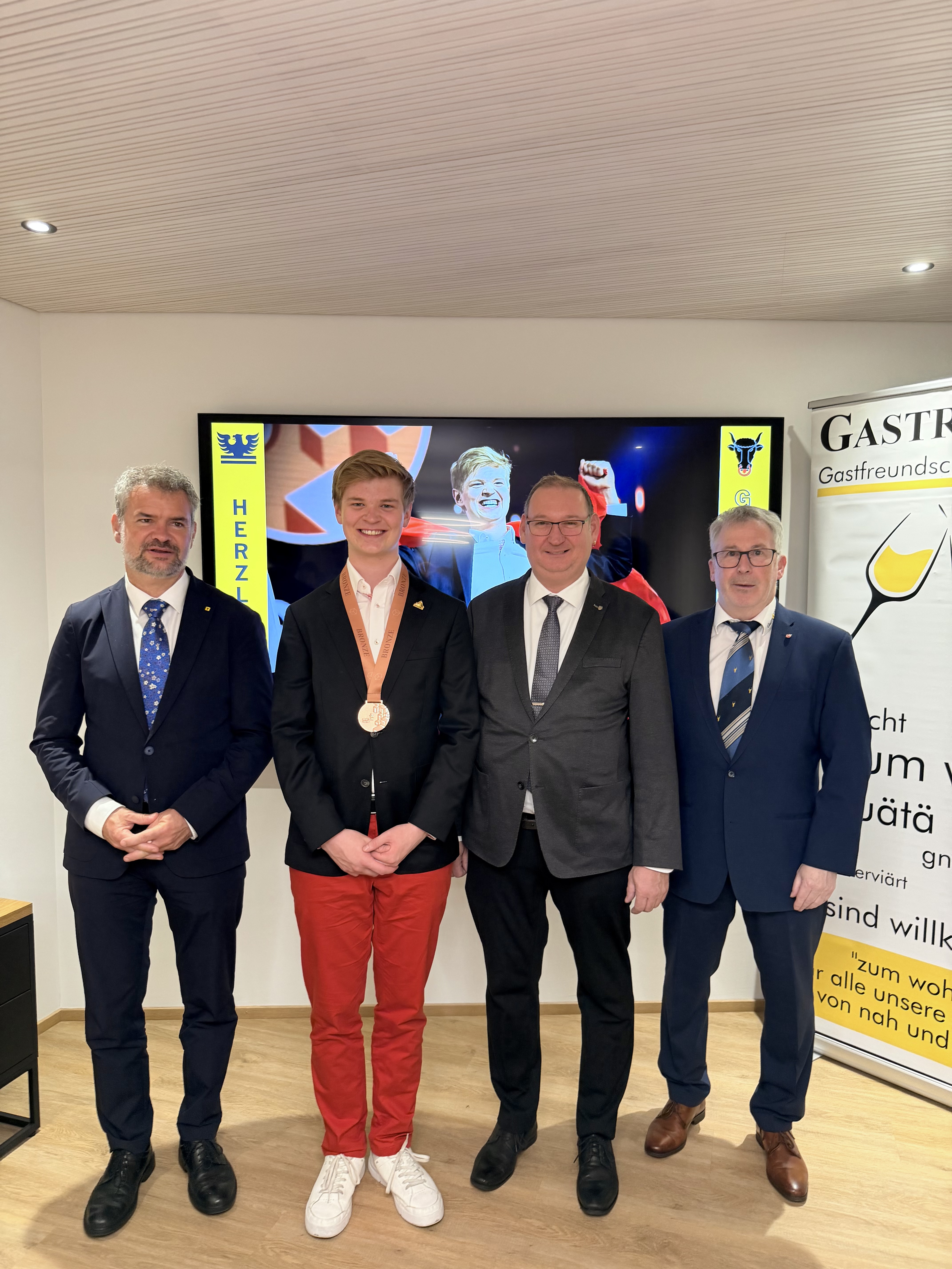 Bild von links nach rechts: Georg Simmen, Regierungsrat / Pascal Arnold, Gewinner Bronzemedaille / Michael Müller, Gemeindepräsident Attinghausen und Joe Herger, Präsident Gastro Uri