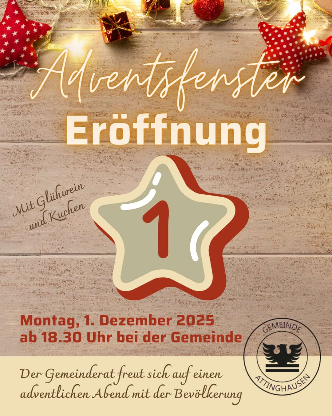 Der Gemeinderat lädt die Bevölkerung herzlich zur Eröffnung des 1. Adventsfensters ein.