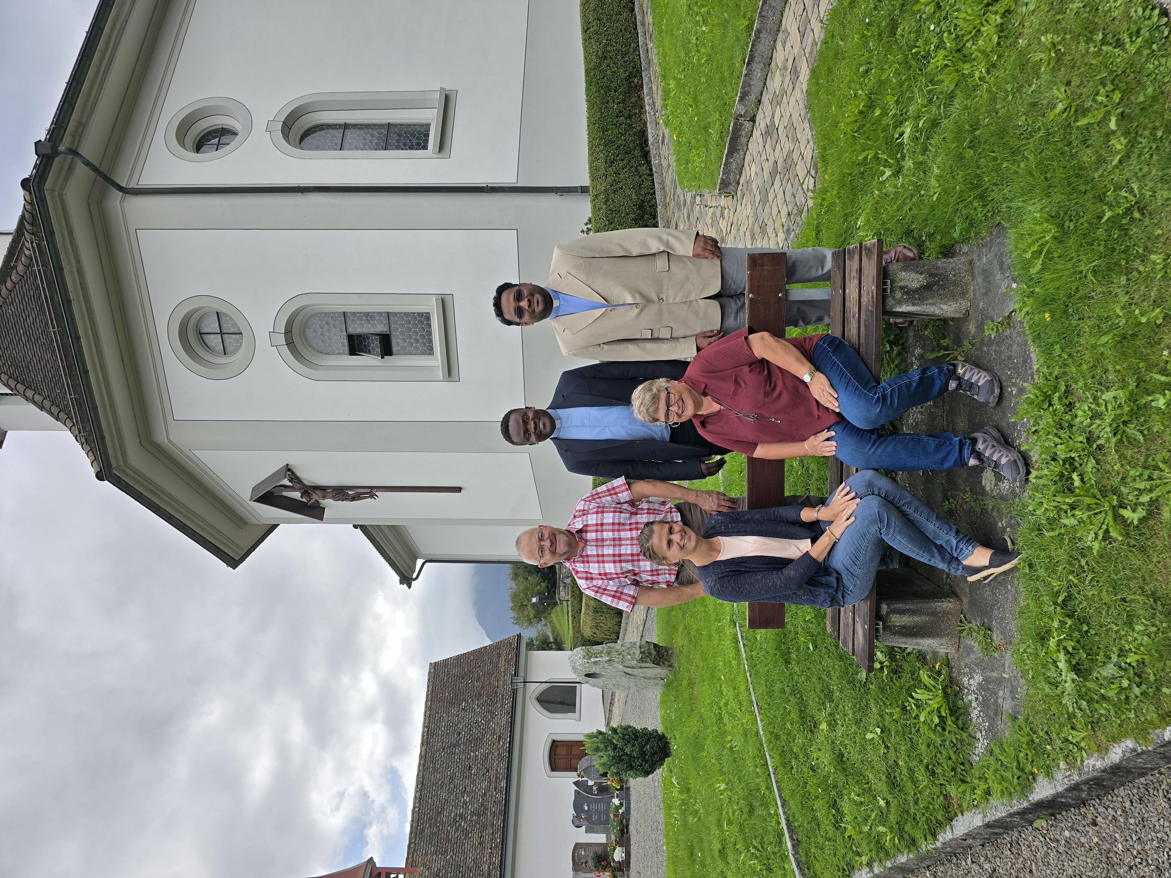 hinten von links: Toni Stadler (Sakristan), Hermann Ngoma Mbuinga (Pfarradministrator), Basil Kallampilly (Vikar);